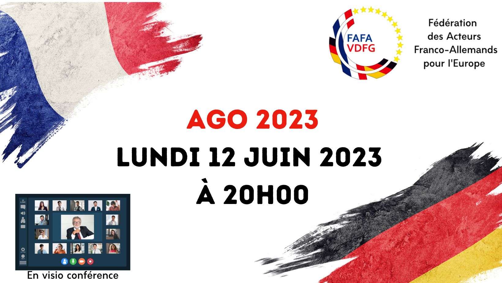 Conformément à la décision du Conseil d'Administration du 2 mai 2023, l'Assemblée générale Ordinaire de la FAFA pour l'Europe aura lieu le lundi 12 juin 2023 à 20h00 en visio conférence.