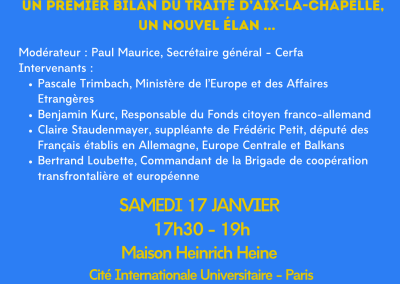 La journée s'est terminée par une très belle table ronde à la Maison Heinrich Heine : "Un premier bilan du Traité d'Aix-la-Chapelle, un nouvel élan...".